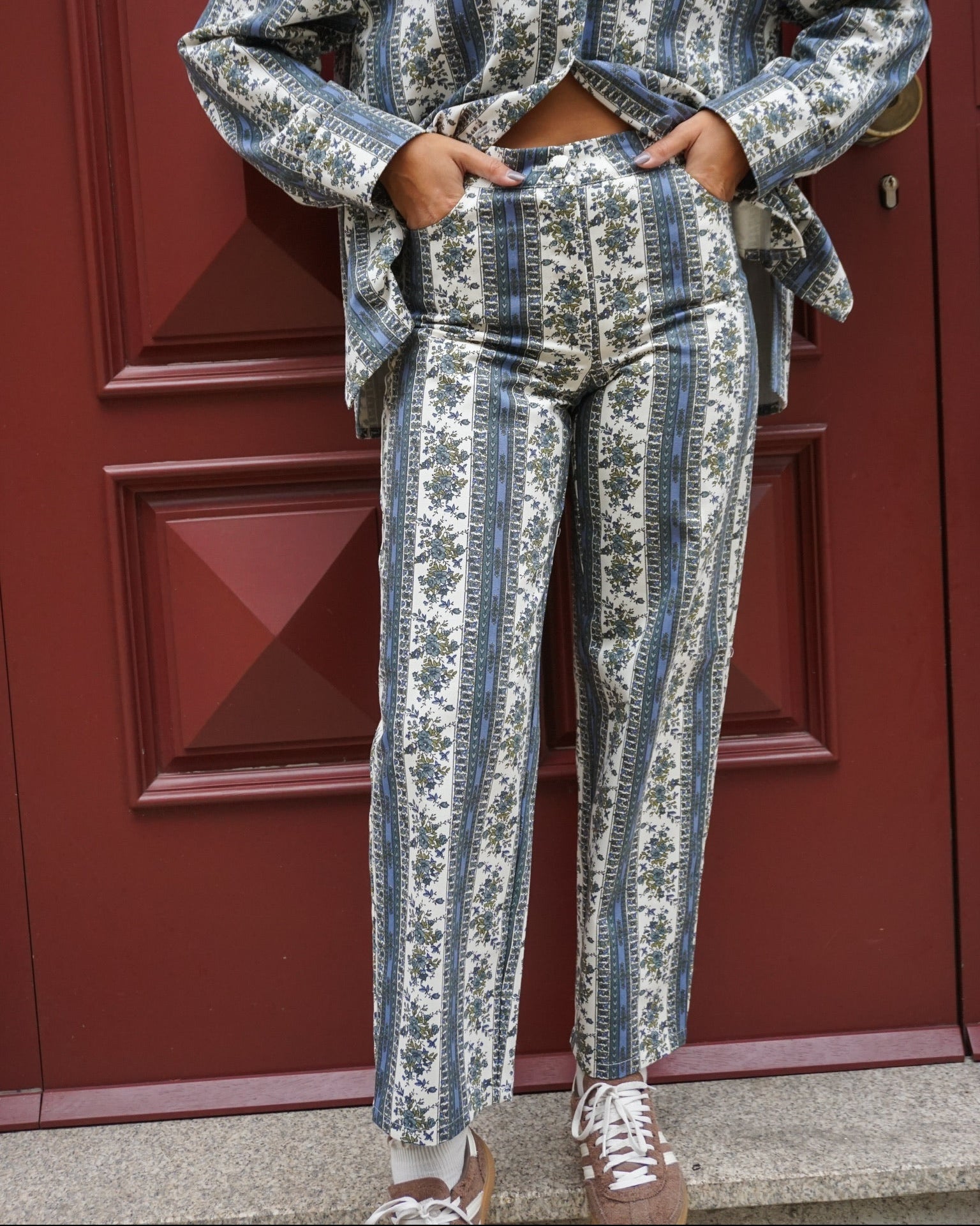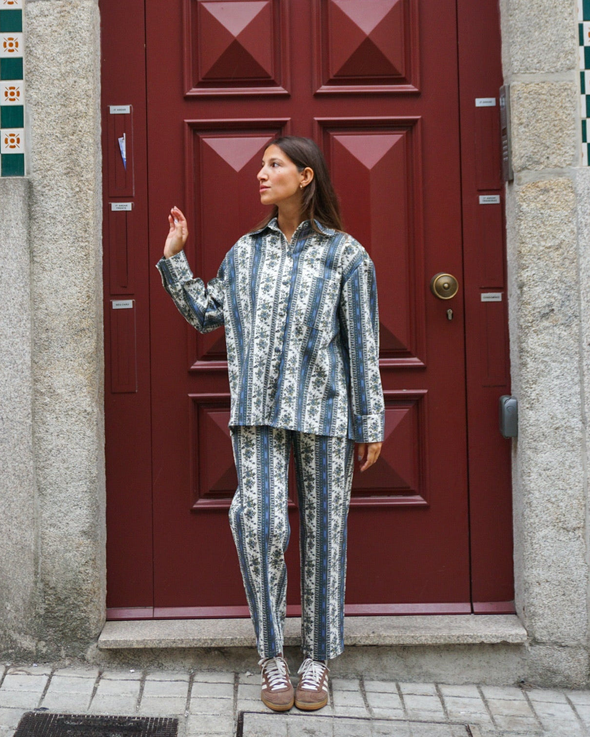 Calças de algodão, corte direito de cintura subida. Uma peça divertida e confortável, que vai complementar os teus looks de Outono.
